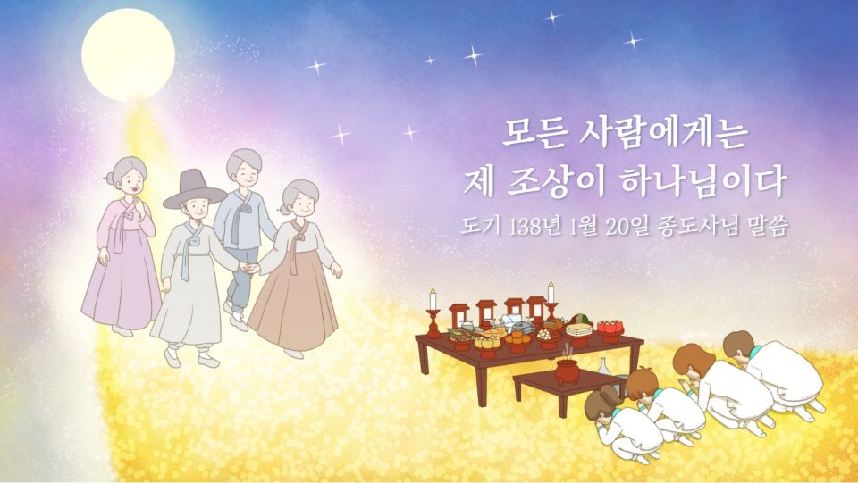 모든 사람에게는 제 조상이 하나님이다! 먼저 조상에게 기도를 하고, 그 조상이 하나님이신 상제님께 기도를 해야 비로소 구원을 받는다는 말씀입니다. 이것이 가장 중요한 가을 개벽기 구원의 방정식입니다.